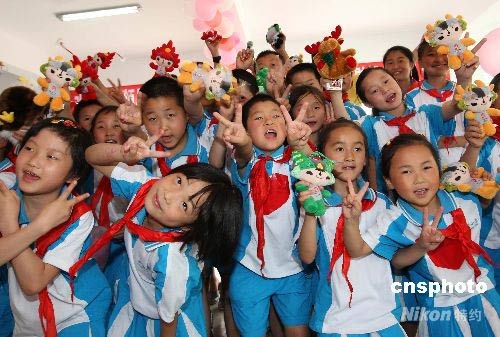 汶川地震災(zāi)區(qū)兒童歡度六一。中新社發(fā) 毛建軍 攝