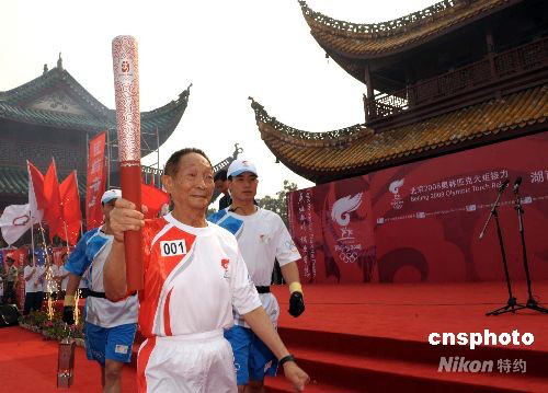 圖:奧運(yùn)圣火在湖南岳陽傳遞