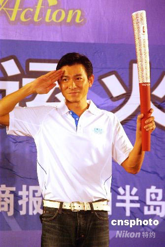 圖:劉德華拍賣奧運火炬捐助災區(qū)教育