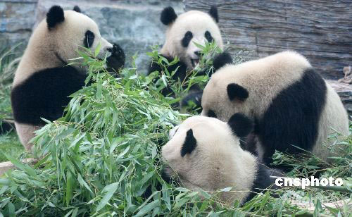2008年6月5日,北京動(dòng)物園熊貓新館正式開放。從四川臥龍來到北京的八只熊貓當(dāng)日在新館正式亮相,吸引了許多市民前來觀看。中新社發(fā) 吳芒子 攝