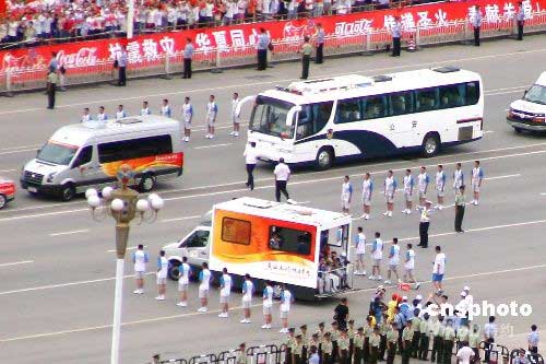 首棒由吳數(shù)德與莫慧蘭交接。中新社發(fā) 駱文剛 攝