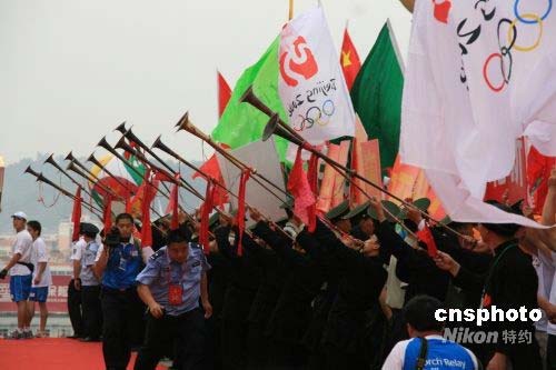 圖:瑤族長(zhǎng)號(hào)奏響樂(lè)章迎圣火
