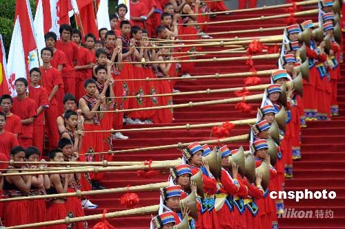 圖:云南各民族群眾歡慶奧運(yùn)圣火傳遞 (2)