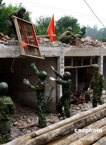 圖:中國空降兵四川震區(qū)幫民眾重建家園(2)