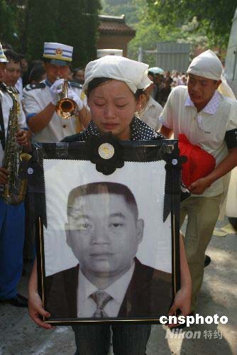 丁剛的女兒捧著父親的遺相含淚走過(guò)送別的人群。 中新社發(fā) 鐘 敏 攝