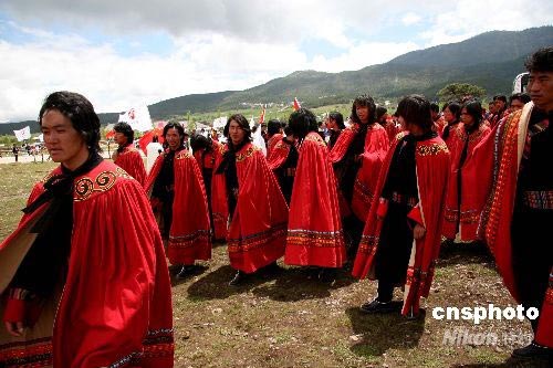 圖:彝族同胞結(jié)隊觀看奧運圣火麗江傳遞