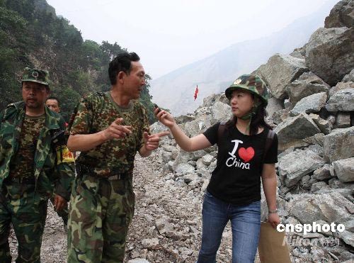 參加搜救的四川省軍區(qū)達(dá)州陸軍預(yù)備役炮兵旅旅長楊喜燦,一邊在途中向記者介紹官兵多天來艱辛,一邊趕往指揮部匯報。中新社發(fā) 賈國榮 攝