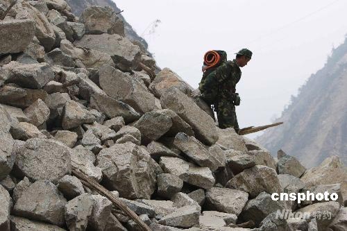 增援官兵趕赴失事直升機警民遺體營地。中新社發(fā) 賈國榮 攝