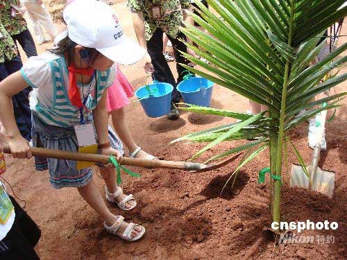 圖為孩子們?cè)趫@中種植愛心樹。中新社發(fā) 陳少婷 攝