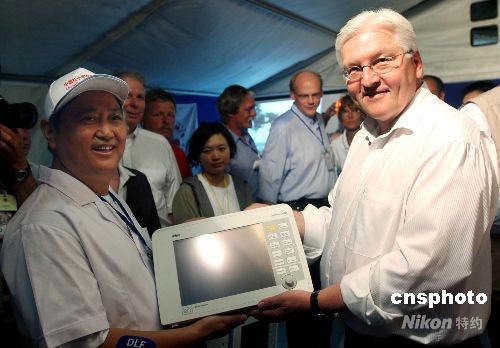 6月15日,德國(guó)副總理兼外長(zhǎng)施泰因邁爾來(lái)到四川都江堰市中德紅十字野戰(zhàn)醫(yī)院,看望中德紅十字野戰(zhàn)醫(yī)院的德國(guó)專家和中方醫(yī)護(hù)人員。中新社發(fā) 黃榮 攝