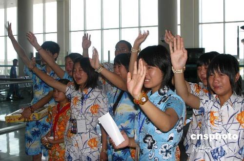6月16日上午,89名參加“愛心呵護、陽光行動”活動的四川地震災區(qū)失親兒童,乘坐南方航空愛心專機返回四川老家。中新社發(fā) 付美斌 攝