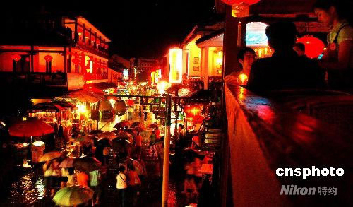 6月17日晚,中外游客在陽朔西街觀光休閑。遭受特大洪災(zāi)“洗禮”的廣西陽朔縣西街,連日來重現(xiàn)游客云集繁華景象。6月13日,50年一遇的特大洪水使陽朔成了一片澤國,西街成了“水街”,全縣旅游業(yè)受到重創(chuàng)。14日洪水消退后,全縣旅游秩序恢復(fù)正常。中新社發(fā) 賀振敏 攝