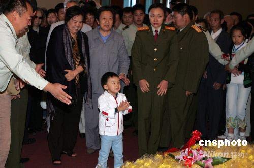 資料圖為2006年9月9日毛澤東逝世三十周年紀(jì)念日。毛澤東的親屬匯聚毛主席紀(jì)念堂敬獻(xiàn)鮮花。邵華、毛新宇及妻子劉濱帶著毛澤東三歲的重孫毛東東向太爺爺獻(xiàn)花。中新社發(fā) 任晨鳴 攝