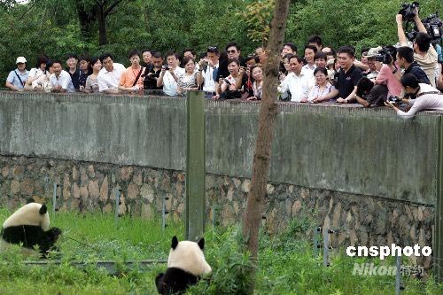 6月25日上午,臺北市長郝龍斌一行到上海野生動物園,看望大熊貓。中新社發(fā) 潘索菲 攝