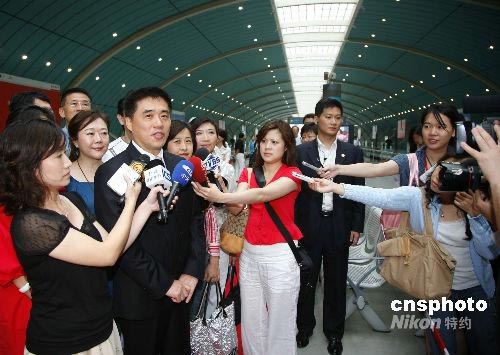 6月27日下午,臺(tái)北市長(zhǎng)郝龍斌結(jié)束在上海的訪問(wèn),搭乘磁浮列車赴浦東國(guó)際機(jī)場(chǎng)返臺(tái)。郝龍斌向記者表示,此次上海之行很好,相信臺(tái)北與上海一定會(huì)雙贏。中新社發(fā) 潘索菲 攝