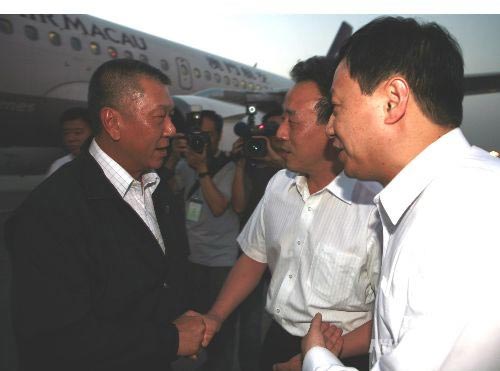 6月27日晚8點(diǎn)10分,澳門特首何厚鏵率領(lǐng)澳門特區(qū)政府代表團(tuán)乘專機(jī)抵達(dá)成都雙流國際機(jī)場,28日將赴地震重災(zāi)區(qū)彭州和都江堰看望災(zāi)民并進(jìn)行考察。中新社發(fā) 秦建平 攝