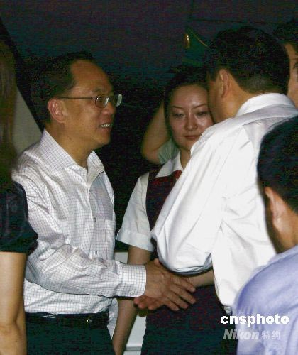 6月27日晚9點55分,香港特首曾蔭權一行乘坐CA428航班抵達成都雙流國際機場,28日將與澳門特首何厚鏵一起前往彭州和都江堰看望災民及考察災后重建情況。中新社發(fā) 黃永莉 攝