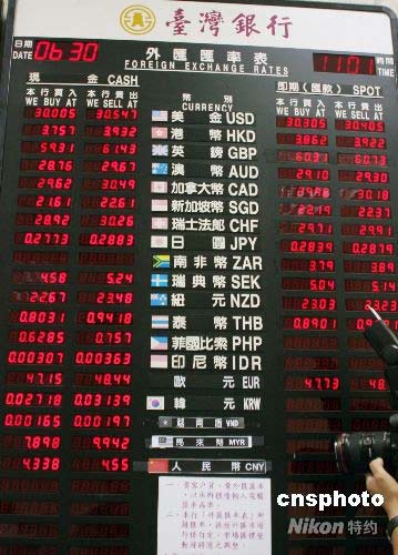 臺灣銀行30日排出人民幣對新臺幣買入一比四點三三八,賣出一比四點五五的匯價,全天就買入近200萬元,賣出逾600萬元人民幣。該行人員表示,人民幣屬強勢貨幣,許多臺灣民眾惜售、爭購以保值。中新社發(fā) 黃少華 攝