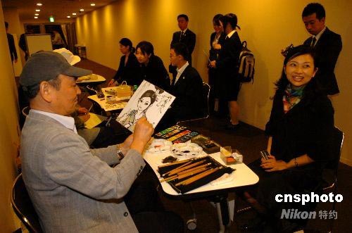 6月30日下午,日本漫畫家協(xié)會在東京為在四川大地震中遭受嚴重損失的綿陽市南山中學舉行漫畫作品義拍活動,所得款項將全部用于該校的災(zāi)后重建。數(shù)十位日本知名漫畫家為此次義拍創(chuàng)作了106幅作品,其中57幅作品在競拍中順利成交,共集得善款約三百萬日元。圖為在競拍場外部分漫畫家為現(xiàn)場觀眾進行人像素描表演。中新社發(fā) 朱沿華 攝