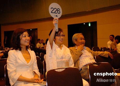 6月30日下午,日本漫畫家協(xié)會在東京為在四川大地震中遭受嚴重損失的綿陽市南山中學舉行漫畫作品義拍活動,圖為競拍現場。中新社發(fā) 朱沿華 攝