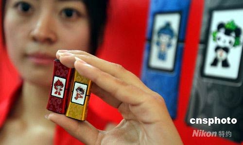 七月二日,北京2008年奧運(yùn)特許商品奧運(yùn)吉祥物電子紀(jì)念章、聯(lián)想火炬閃存盤等正式推向市場(chǎng)。特別是聯(lián)想奧運(yùn)吉祥物閃存盤由于價(jià)格適中、實(shí)用性強(qiáng),一上市就受到消費(fèi)者的喜愛。 中新社發(fā) 任海霞 攝