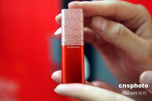 圖為奧運(yùn)特許商品聯(lián)想奧運(yùn)火炬閃存盤。 中新社發(fā) 任海霞 攝