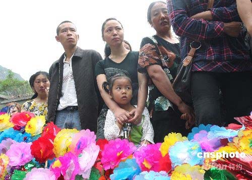 圖為理縣眾多群眾紛紛前來(lái)為烈士送行。中新社發(fā) 黃榮 攝