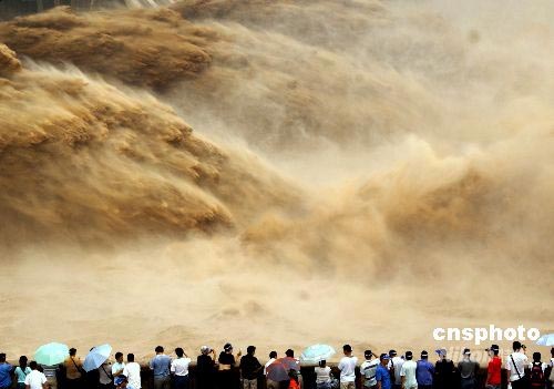 7月4日從小浪底建管局獲悉,小浪底水庫(kù)自7月3日6時(shí)開始按1500立方米/秒控泄,這標(biāo)志著小浪底水庫(kù)2008年汛前調(diào)水調(diào)沙中所承擔(dān)的任務(wù)已經(jīng)完成。此次調(diào)水調(diào)沙,小浪底水庫(kù)下泄水量約40.3億立方米,水庫(kù)補(bǔ)水約28億立方米。小浪底水庫(kù)水位由調(diào)水調(diào)沙開始時(shí)245.24米回落至調(diào)水調(diào)沙結(jié)束時(shí)222.76米。圖為6月23日、29日小浪底水庫(kù)調(diào)水調(diào)沙時(shí)的情景。中新社發(fā) 平白 攝