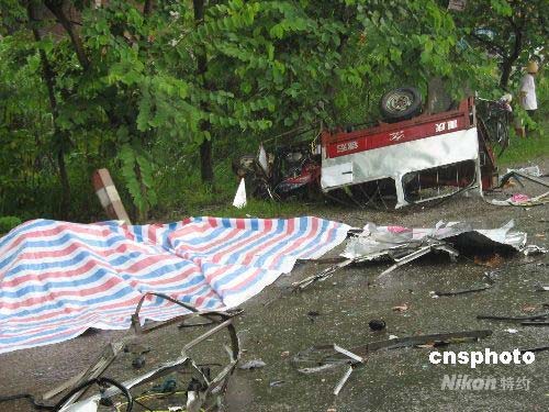 圖為出事三輪摩托車。中新社發(fā) 林泉 攝