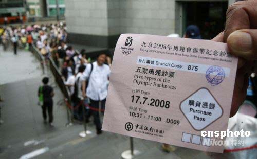 數(shù)千香港市民排隊領(lǐng)取奧運紀念鈔票購物憑證(3)