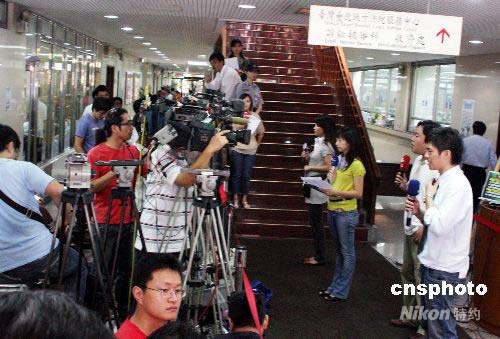 7月21日,臺(tái)灣前海軍中將雷學(xué)明等控告陳水扁等人誹謗案在臺(tái)北地方法院開庭。這是是陳水扁卸任臺(tái)灣領(lǐng)導(dǎo)人后首度至法院出庭,創(chuàng)下卸任領(lǐng)導(dǎo)人以被告出庭的首例。為此,臺(tái)灣大批媒體在臺(tái)北地方法院的兩個(gè)入口擺開陣仗采訪。中新社發(fā) 黃少華 攝