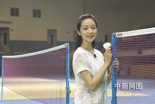 圖:影視紅星韓雪奧運(yùn)羽毛球館激情揮拍