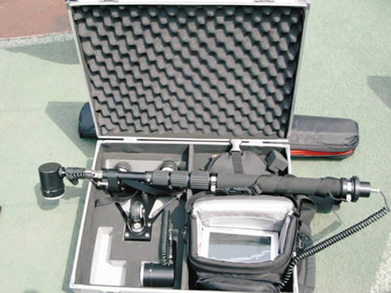 這種視頻探測器是于去年年底引進的。它有廣角鏡頭,拍攝范圍比較廣,還可用于近距離觀察。檢查鏡探入車底時也運動自如,不會被損壞。探桿可以拉至所需要的長度,對人工觀察不便的“犄角旮旯”進行清晰觀察。視頻探測器表面上很不起眼:裝置設(shè)備的箱子,還不如一般的旅行包大。但它有一個能伸縮的棍狀探桿,能“看到”難以觀察的“死角地帶”,尤其在黑暗中,它還能自動轉(zhuǎn)換為紅外攝像頭,顯示黑白圖像進行搜索。