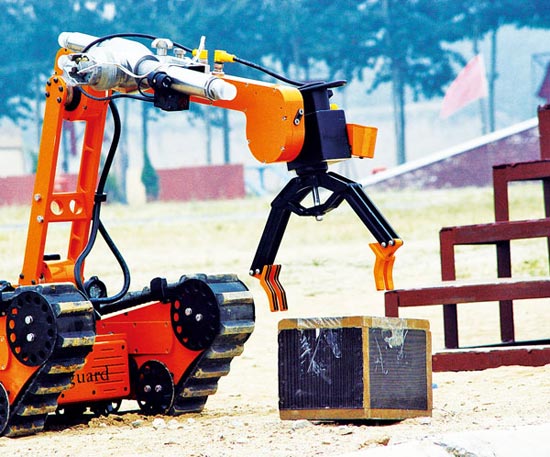 排爆機(jī)器人是“秘密武器”中的明星,“身價”不菲。它可用于在種復(fù)雜地形進(jìn)行排爆。具有出眾的爬坡、爬樓能力,能靈活抓起多種形狀、各種擺放位置和姿勢的嫌疑物品。最大爬坡能力為45度樓梯。可遠(yuǎn)距離連續(xù)銷毀爆炸物。還標(biāo)配可遙控轉(zhuǎn)動彩色攝像機(jī),其中大變焦攝像機(jī)可128倍放大,確保觀察無死角。