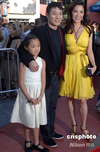 環(huán)球影業(yè)七月二十七日在好萊塢舉行《木乃伊3:龍帝之墓》(The Mummy: Tomb Of The Dragon Emporer)首映式。著名功夫影星李連杰和楊紫瓊及李連杰愛女Jane出席首映式。中新社發(fā) 張煒 攝