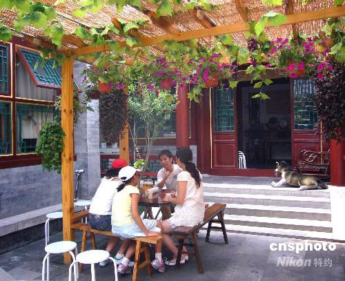 圖為首戶獲得“奧運(yùn)人家”青花瓷盤(pán)標(biāo)志的家庭——北京什剎海南官房胡同39號(hào)。 這座典型的北京民居,雕梁畫(huà)棟,整潔清新,院中的石榴樹(shù)和牡丹花透著勃勃生機(jī),蟈蟈在竹籠里歡快地叫著。游客們圍坐在石桌前聆聽(tīng)主人敘述這座四合院的來(lái)歷:“四合院由東、南、西、北四面的房間圍合而成,里面是一個(gè)中心庭院,已有兩千多年的歷史。古代,正房中間的椅子是專(zhuān)門(mén)給長(zhǎng)輩坐的,因?yàn)楦改甘羌依镒钍茏鹁吹娜。父親坐在左邊,母親坐在右邊。”家庭講解員們不停地向前來(lái)參觀的國(guó)內(nèi)外游客講述這座院落的歷史。 據(jù)介紹,自從被評(píng)為首個(gè)“奧運(yùn)人家”以后,國(guó)內(nèi)外各地的游客紛至沓來(lái),前來(lái)參觀的游客人數(shù)驟增,于是親戚們便自發(fā)來(lái)幫忙,目前家里的工作人員有十幾人,其中有三個(gè)人的英語(yǔ)都是六級(jí),奧運(yùn)會(huì)期間,這三個(gè)人將會(huì)請(qǐng)假專(zhuān)職在四合院為來(lái)訪的奧運(yùn)賓客服務(wù)!
