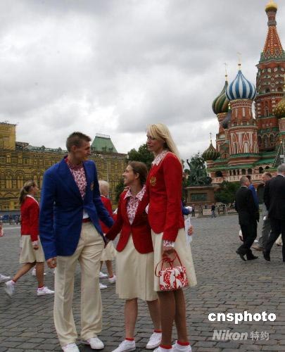 圖為基里連科和運動員在紅場合影。中新社發(fā) 田冰 攝