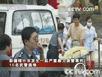 據(jù)中央電視臺(tái)報(bào)道,8月4日上午8時(shí)許,新疆喀什市邊防支隊(duì)集體出早操行至一賓館時(shí),突遭2名作案分子駕車襲擊,并引發(fā)車上的爆炸物,當(dāng)場(chǎng)造成16人死亡,16人受傷,2名作案人員已經(jīng)被抓獲,案件正在進(jìn)一步審理中。
