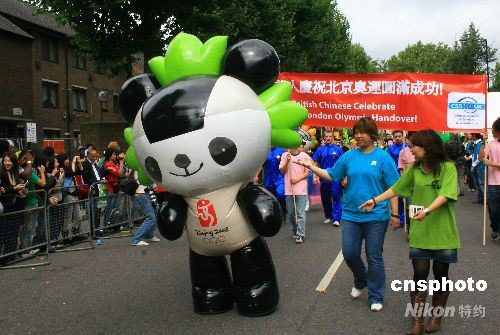 當?shù)貢r間25日,歐洲最大規(guī)模的街頭文化藝術(shù)節(jié)——一年一度的英國諾丁山狂歡節(jié)在倫敦舉行。今年的狂歡節(jié)上,當?shù)厝A人團體的盛裝隊伍打出“英國華人慶祝北京奧運圓滿成功”的橫幅,在福娃的帶領(lǐng)下走在狂歡節(jié)所有隊伍的最前面。