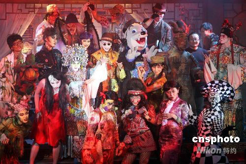 八月二十八日,香港海洋公園主席盛智文粉墨登場,率領(lǐng)一群打扮怪異的“嘩鬼”向前來采訪的傳媒“張牙舞爪”。當(dāng)日,海洋公園推介將在十月份舉辦的萬圣節(jié)“哈啰喂”活動,出動大批猛鬼演繹八大主題和恐怖大餐。中新社發(fā) 洪少葵 攝