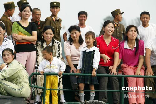 朝鮮建國60周年 新義洲民眾暢游鴨綠江(5)