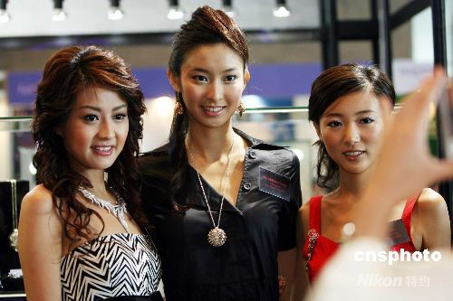 九月十八日,應(yīng)屆香港小姐冠軍張舒雅、亞軍陳倩揚(yáng)及季軍馬賽應(yīng)邀到“香港珠寶鐘表展”上,為香港珠寶制造業(yè)廠商主辦的“2008首飾設(shè)計(jì)比賽”擔(dān)任評(píng)判。中新社發(fā) 洪少葵 攝