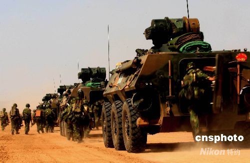 濟(jì)南軍區(qū)機(jī)械化步兵旅火速集結(jié)訓(xùn)練。中新社發(fā) 宋吉河 攝