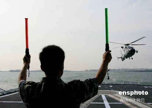 9月下旬,海軍某艦載機(jī)部隊(duì)載直升機(jī)進(jìn)行著艦訓(xùn)練。中新社發(fā) 鄢潤(rùn)波 攝