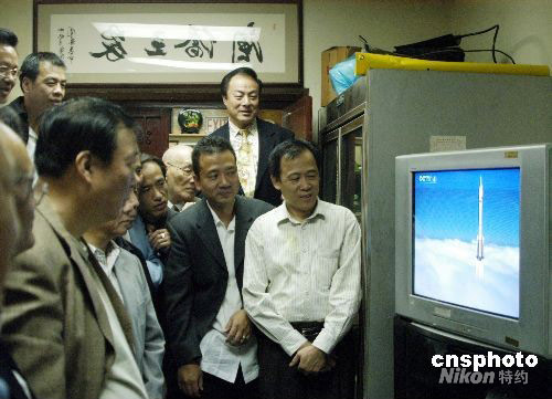 中國(guó)神州七號(hào)載人飛船發(fā)射成功,身在美國(guó)的華人華僑歡欣鼓舞,信心大振。紐約福建同鄉(xiāng)會(huì)重復(fù)播放“神七”升空的電視機(jī)前,總是站滿了觀看節(jié)目的僑胞。中新社發(fā) 魏晞 攝