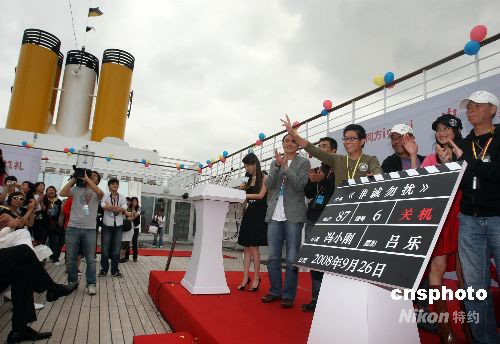 9月26日,馮小剛攜09年賀歲新片《非誠勿擾》全體主創(chuàng)人員搭載歌詩達(dá)豪華郵輪完成電影拍攝返滬,并在郵輪上舉行了《非誠勿擾》的關(guān)機(jī)儀式。中新社發(fā) 湯彥俊 攝
