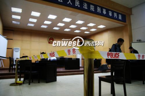 圖為法庭內(nèi)拉起了黃色警戒線。