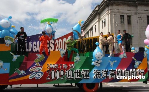 圖為臺(tái)灣高雄市布置的花車在為二00九年舉辦的世運(yùn)會(huì)做宣傳。中新社發(fā) 耿軍 攝