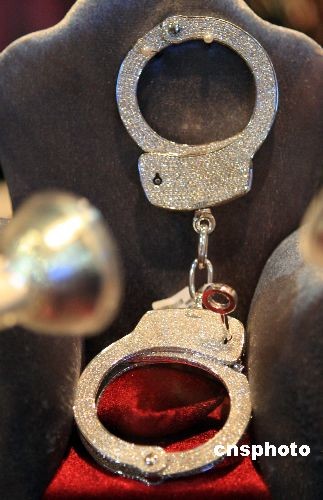 10月10日,一付價(jià)格為12萬美元、由鉆石、白金精致鑄造的手銬,亮相上海富世峰會(huì),這種另類的奢侈藏品,讓參觀者不得不探究其中的另類品味。中新社發(fā) 潘索菲 攝