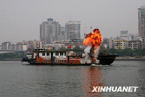 10月20日,一艘載有40名旅客的客船模擬與裝運(yùn)硫酸的液貨船發(fā)生碰撞,造成客船機(jī)艙起火爆炸。 當(dāng)日,廣西迄今最大規(guī)模內(nèi)河水上搜救演習(xí)在柳州市柳江河段舉行,演習(xí)完成了旅客疏散、船舶滅火、污染控制等課目演練,數(shù)百人、30多艘救援船舶參加。演習(xí)旨在完善水上突發(fā)事件應(yīng)急反應(yīng)聯(lián)動機(jī)制,為廣西水上交通營造安全氛圍、提供安全保障。